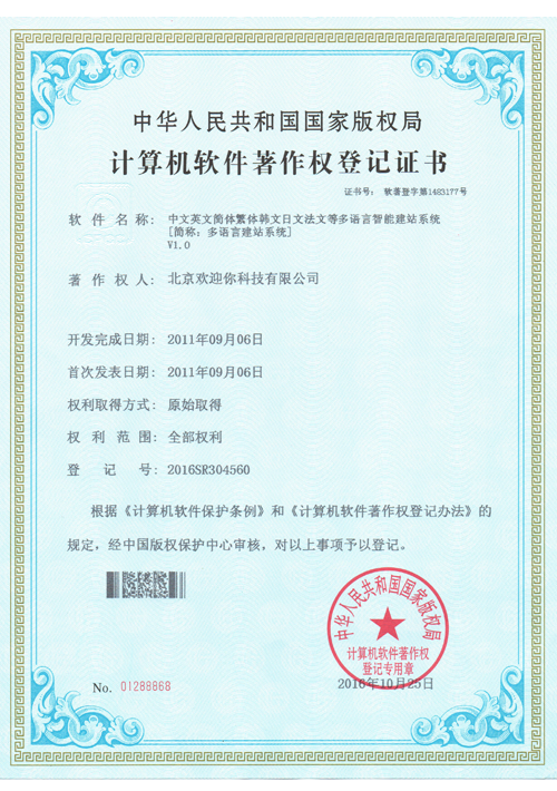 北京歡迎你科技有限公司獲得多項(xiàng)國家版權(quán)局頒發(fā)的"計(jì)算機(jī)軟件著作權(quán)登記證書",并已獲得“全國質(zhì)量服務(wù)客戶滿意誠信企業(yè)”、“全國重合同守信用品牌企業(yè)”和“全國誠信經(jīng)營示范單位”等榮譽(yù)稱號(hào)。