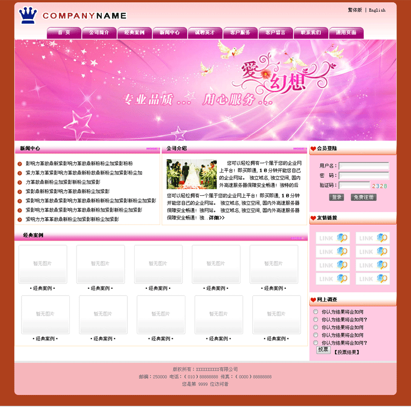 電腦科技 手機(jī) 數(shù)碼 軟件 家裝家具 衛(wèi)浴潔具 日用品 五金建材 裝飾 模具 機(jī)械 家居紡織 服裝 鞋帽 皮革 鮮花 禮品 工藝品 玩具 廣告設(shè)計(jì) 婚慶 攝影 影樓 家電 照明 電子 影音設(shè)備 辦公文具 體育 健身 食品 茶葉 飲料 煙酒 休閑娛樂 餐飲 咖啡 茶樓 珠寶 首飾 化妝品 保養(yǎng)品 養(yǎng)生美容 休閑 家政服務(wù) 汽車 配件 摩托 電動車 電氣 儀器 儀表 設(shè)備 鐘表 眼鏡 配件 零件 環(huán)保能源 環(huán)保生態(tài) 節(jié)能 房地產(chǎn) 租賃 建筑 裝修 冶金 金屬 零件 配件 礦產(chǎn) 石油 化工 原料 農(nóng)業(yè) 生物技術(shù) 水產(chǎn)養(yǎng)殖 醫(yī)院 藥品 診所 保健品 展覽 展會 設(shè)計(jì) 慶典 傳媒 印刷 包裝 制造業(yè) 法律 會計(jì) 策劃咨詢 翻譯 金融 證券 貸款典當(dāng) 拍賣 家政 保潔 搬家公司 旅游 賓館 農(nóng)家樂 票務(wù) 運(yùn)動 戶外 寵物用品 倉儲 貨運(yùn) 物流 租車 工業(yè)制品 橡膠 安防 維修 保養(yǎng) 廢料回收 學(xué)校 文化 教育 培訓(xùn) 公司注冊 商標(biāo)專利 論壇 BBS 問答平臺 企業(yè)半定制型 利于SEO 企業(yè)DIV型 利于SEO 政府門戶 協(xié)會 機(jī)構(gòu) 行業(yè)門戶 集團(tuán) 貿(mào)易 交友門戶 分類信息網(wǎng) 學(xué)校門戶 教育門戶 旅游門戶 農(nóng)業(yè)門戶 醫(yī)院門戶 醫(yī)療門戶 商貿(mào)門戶 信息門戶 政府門戶 集團(tuán)門戶